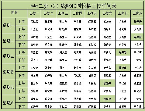2.    将区域内的员工技能使用目视化看板表示出来;