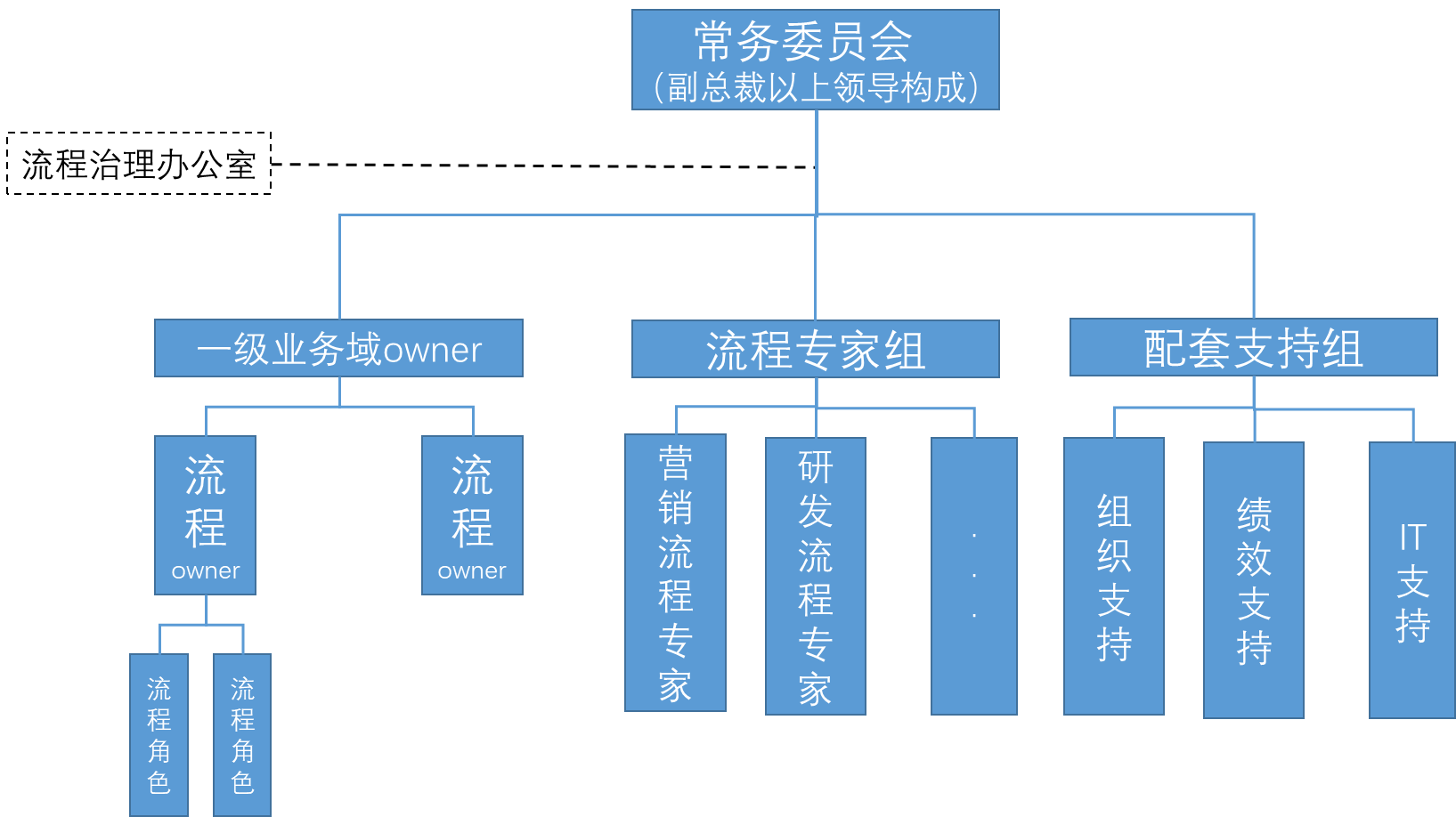 常务委员会:作为流程治理委员会的最高决策组织,主要成员为公司副总裁级别以上领导组成,委员会主任最好由各成员轮值担任。这样的好处是,避免将流程治理委员会作为一个权力机构。常务委员会应该是能决策跨领域、跨部门的流程治理事务,并能明确授权资源配置的一个民主议事机构。