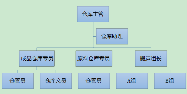 一个分工明确的团队或组织,能使成员的工作能力最大化发挥,并且使作业风险最小化。仓库需要一位仓库主管/经理统筹仓库管理运营的事务,考核奖惩、规程制定及未来方向的确认。设置仓储助理负责一般性的管理监控及项目性工作的执行;仓库文员负责操作ERP系统,进行进出仓单据的制定及打印,管理账务系统;仓库专员/组长负责属下仓管员的管理,并参与与外部单位的沟通协作;仓管员负责执行进出仓过程及物料在仓期间的管理;搬运组负责借助仓储机械,实现物料的进出仓。