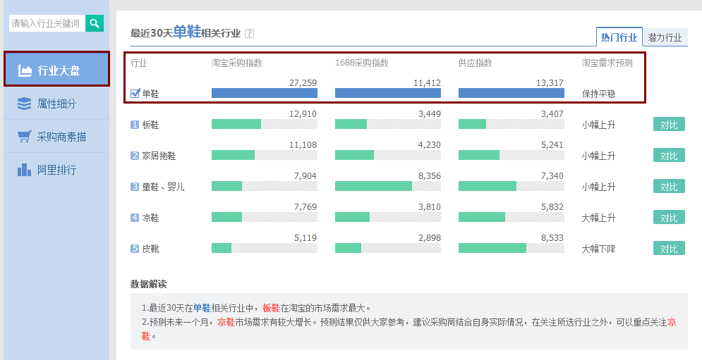 另外,30天的相关行业也需要看,这个数据对我们来说也是个参考,我们可以知道这一个月内相关行业的需求量、采购量及相应指数。