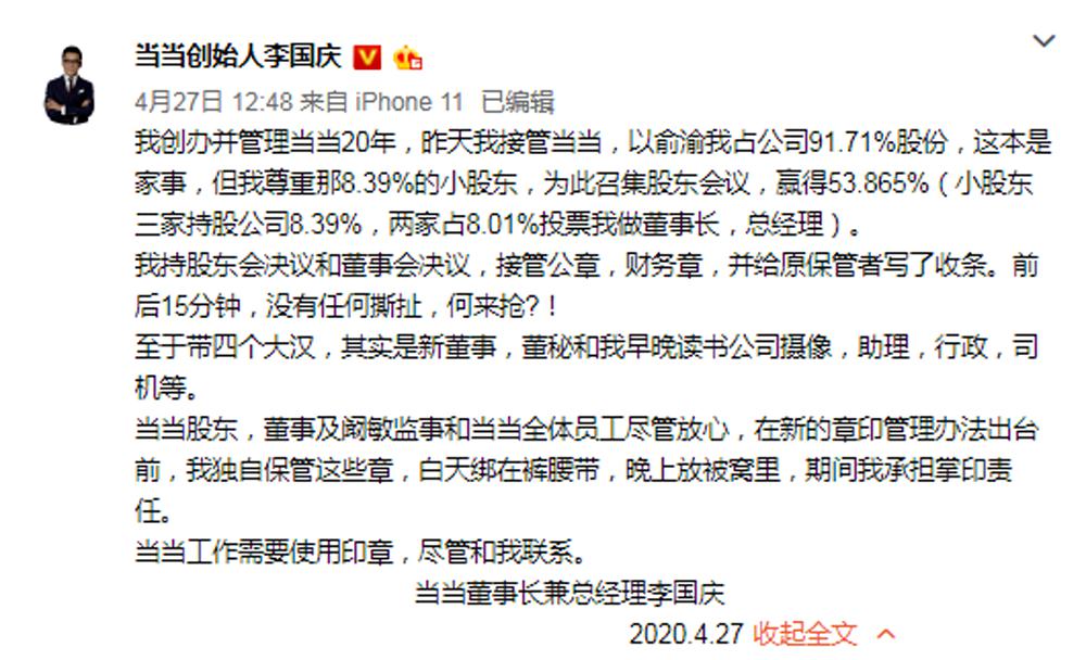 图3-1李国庆不再担任当当网任何职务
