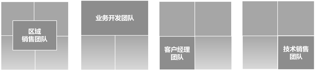 面对新客户销售时,销售人员需要用更多的时间了解市场趋势、客户购买动态和竞争对手的做法。为此,企业设立了业务开发团队,负责向新客户销售现有产品和新产品。企业每年都会推出一些创新产品,或对已有产品升级迭代。企业设立技术销售团队,团队成员作为产品和技术专家,与区域销售人员、客户经理及业务开发团队密切合作,推动具有高度技术性的新产品的销售。图2-65为该企业销售岗位配置示例。