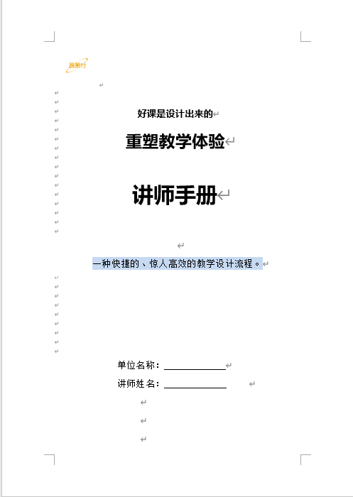 讲师手册封面通常会体现单位或项目LOGO、课程名称、讲师手册、单位、日期。如图4-2所示。
