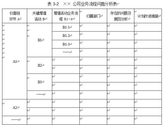 运用该业务流程问题分析表,基本上可以把企业价值链环节的所有流程都梳理出来,这样企业需要的各级业务流程清单就非常清晰了。