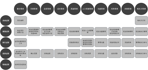 项目管理其实都是有招有法的,如果系统学习过PMP,你会了解到项目管理有十大知识领域的内容,而且这些内容贯穿于项目的五大过程组(如图0-1所示),这些几乎涵盖了项目的方方面面。这里推荐系统学习PMP项目管理方法论,这些都是经过前人千千万万个项目总结整理出来的最佳实践。特别是新项目经理,可以在做项目前、过程中反复查阅相关的理论知识,并且尝试理论应用于实际,事后总结提升处理事情和解决问题更好的应对方法。