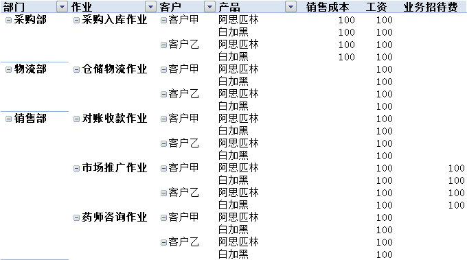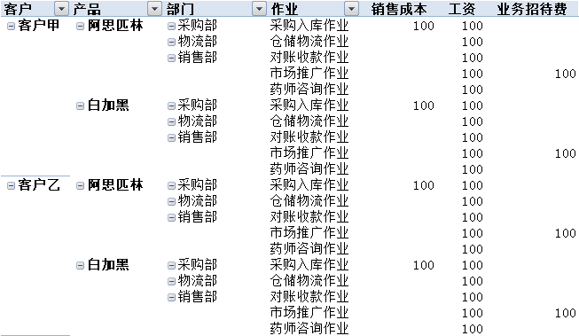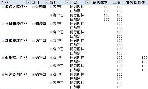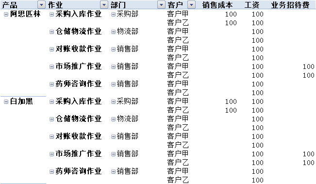 可查询客户与产品、部门、作业的任意组合的成本。