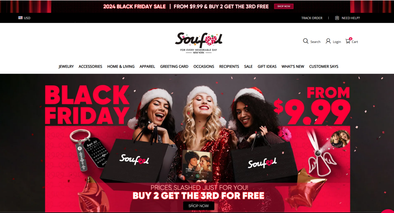 通过清晰的品牌故事和身份,增强消费者对品牌的情感连接。品牌故事应讲述品牌的起源、价值观和使命,让消费者感受到品牌的独特性与情感共鸣。确保品牌标识(如Logo、颜色和字体)在各个渠道保持一致,以增强品牌认知度。下图展示了知名DIY配饰大卖Soufeel的独立站主页。