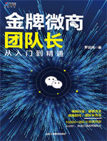 2. 快速打造微商团队长 这是一本微商团队长创业实操的指导工具书。 假如你是一名微商创业新人,通过这本书,你会掌握如何在朋友圈互动,如何进行社群运营、代理商招募、线上引流、线下沙龙、团队培训、团队管理等。这本书能够帮助你快速融入微商行业,成为一名合格的微商团队长。 假如你是一名微商创业老兵,通过这本书,你能掌握系统化的培训管理课程,能够针对不同级别的代理商提供相应的课程内容与技巧,让自己拥有快速复制团队的能力。 读完本书你会发现,你不需要再到处搜罗课程、跑场学习,那些创业产生的焦虑与迷茫也会离你远去。